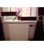 Ponadto, jeśli urządzenie żeliwne posiada podzielnik ciepła wystający na więcej niż 10 mm poza obrys - nie można zastosować naszej zabudowy. Osłona na kaloryfer oprze się wówczas o podzielnik i nie będzie przylegać do czołowej powierzchni urządzenia.
