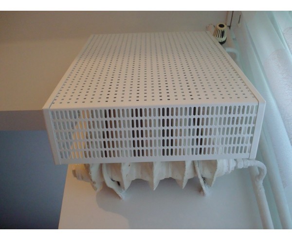 Osłona wisząca – pasuje na grzejnik żeliwny, który został zamontowany wysoko na ścianie – rozwiązanie tego typu często spotykane w blokach (np. kuchnia, łazienka).