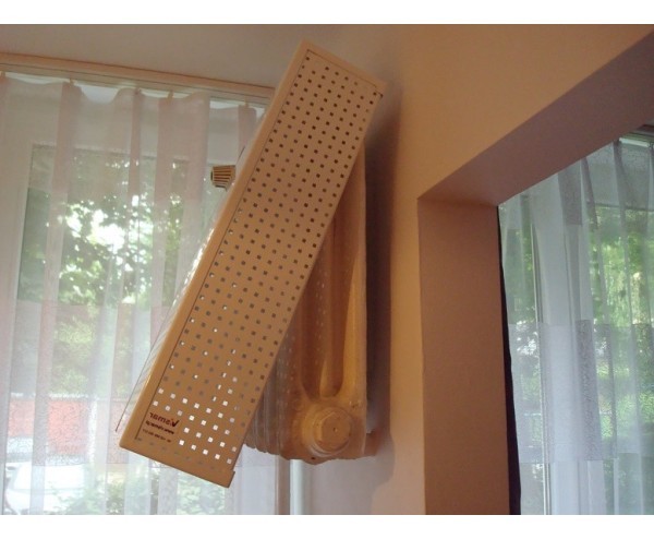 Osłona wisząca – pasuje na grzejnik żeliwny, który został zamontowany wysoko na ścianie – rozwiązanie tego typu często spotykane w blokach (np. kuchnia, łazienka).